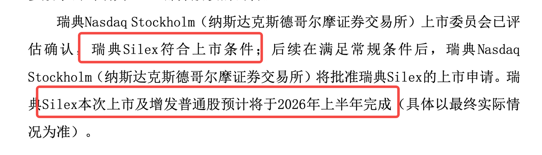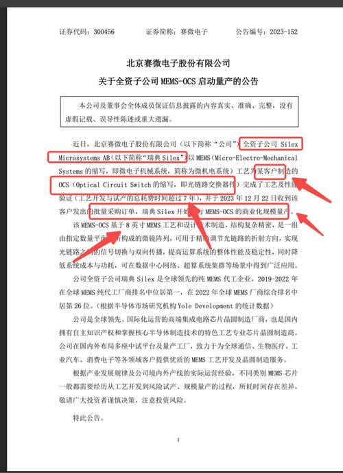 公告 赛微电子:关于参股子公司瑞典Silex境外上市暨公司转让瑞典Silex部分股权的进展公告