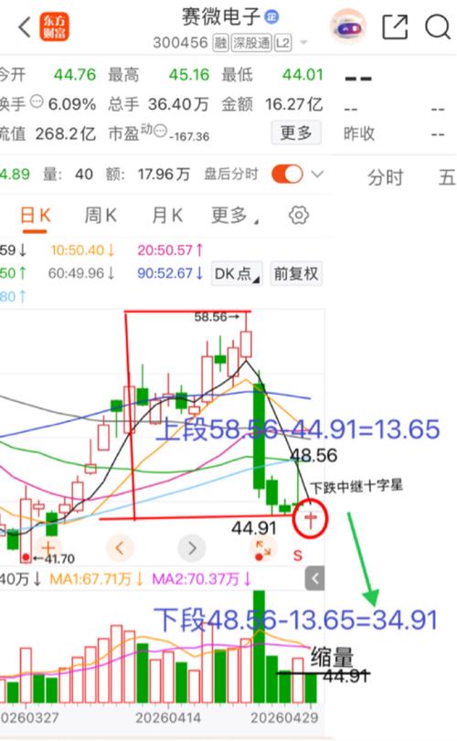$赛微电子(SZ300456)$好消息!真正的底部我已经计算出来!以今天的下降中继十字星为基点分为上下两段下跌,上半段由58.56-44.91跌幅13.65元,下半段48.56-13.65=34.91;你们有没有发现神奇的数字?高点和高点之间与地点和地点之间都是10元;而且上半段的高点58.56和低点44.91与下半段的高点48.56及低点34.91连尾数都是一致;#复盘记录#...