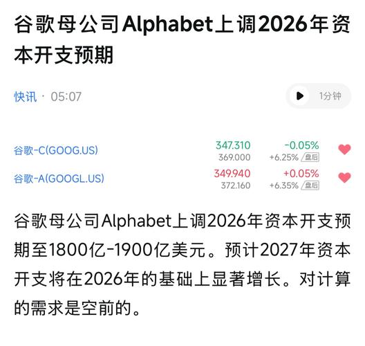 今天知道谷歌发财报,自动早醒,醒来看了一眼我最关心的谷歌刚发布的财报,业绩好到爆炸。 主要数据全部大超预期。特别是调整后的美股收益是预测值的两倍。也就是说谷歌的成本支出扩大,是可以实打实的拿到超预期回报。 盘后股价大涨6个多点,市值冲上4.2万亿美元。 26年成本支出继续提前,超过之前第一次大幅上调的1800亿,且表示明年继续大幅增加。 谷歌明确表示计算需求是空前的。 最后说一下对$赛微电子(SZ300456)$...