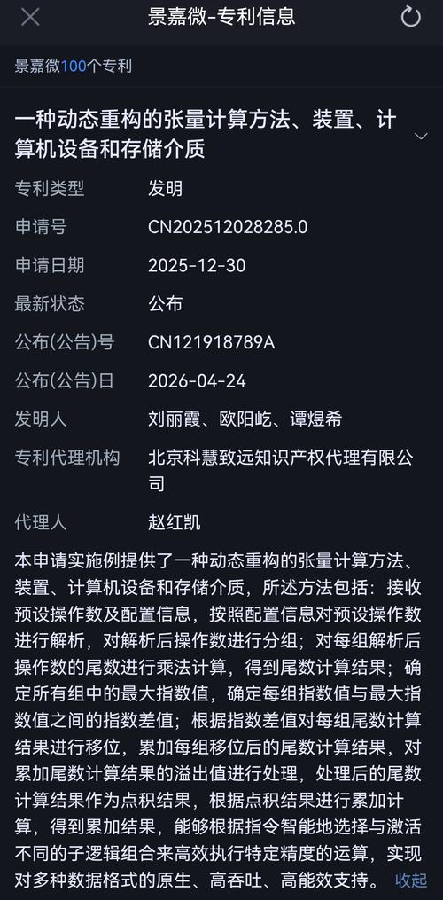 $景嘉微(SZ300474)$两项同日公布的专利,从算力核心的“软实力”与芯片物理落地的“硬支撑”两大维度,共同为景嘉微的算力芯片研发注入了关键动力。 动态重构张量计算专利:为算力注入效率“软实力” 这项专利从根本上解决了AI芯片“能不能高效算”的问题,为景嘉微撬动AI市场提供了关键钥匙。 ·破解能效瓶颈:通过实现动态重构与子逻辑组合,能原生高效支持INT4/FP4等超低精度计算。对于CH37这类...