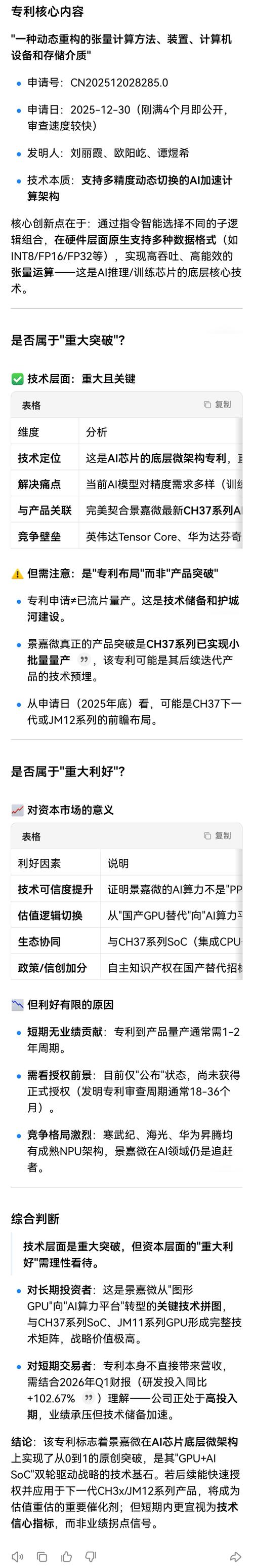 关于专利的事情如果真是行业人士可以发表一下,如果是ai是查的就别硬往上套利好了,Ai上就是胡说说八道,按照你的意思套用,机构比谁都整的明白,要没啥大的技术突破,硬套利好机构肯定会砸盘。
