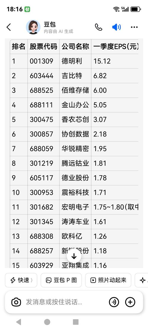 $香农芯创(SZ300475)$到目前为止每股收益一季度展示前几名的