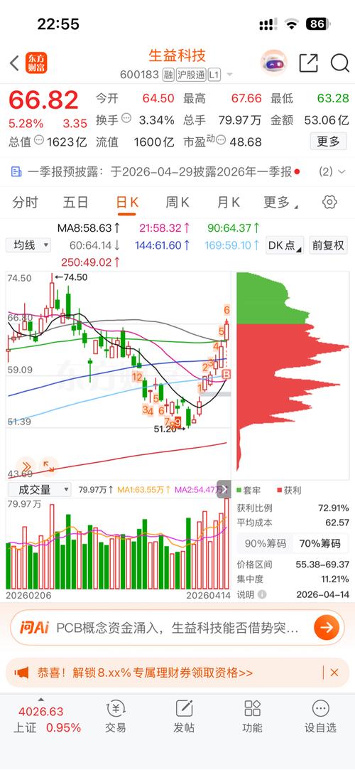 今日市场高开后震荡运行,尾盘出现部分资金流出,但整体延续强势。沪指涨0.95%报4026.63点,时隔多日重返4000点关口;创业板指大涨2.36%创阶段新高。两市成交额放量至2.4万亿元,超3700只个股上涨。盘面上,存储芯片、算力硬件、锂电池等科技成长方向领涨,协创数据、大为股份等多股涨停;油气、煤炭板块则跟随国际油价调整。整体来看,市场做多情绪升温,资金围绕一季报高景气方向积极布局。 德明利...