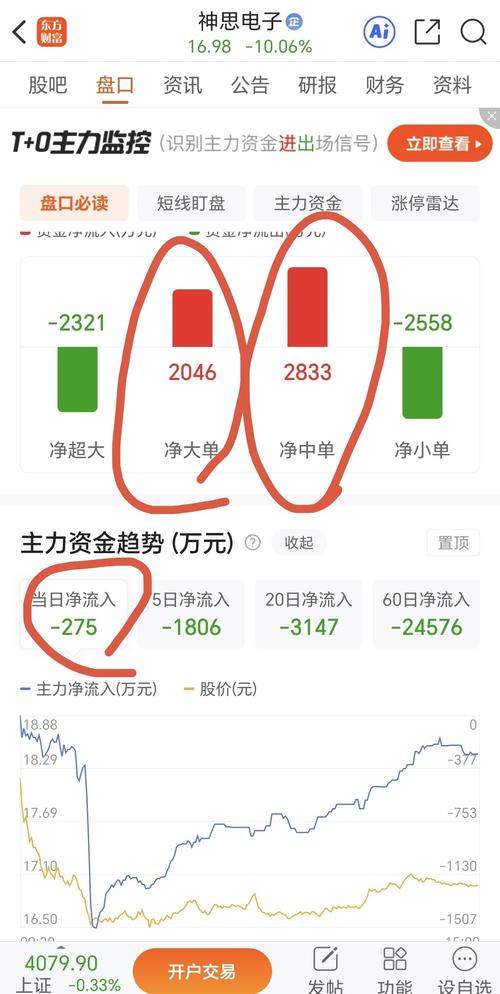 $神思电子(SZ300479)$神思昨天(星期五)全天交易2.84亿,股价下跌10.06%,一个跌停板,量价齐跌,放了近期的最大量,主因是一季度业绩太差引起的抛售,这也是昨天大家这么认为的,但是从盘面资金流进流出数据来看,也有一些疑点,就是这么大的成交量,超大资金仅流出275万,按照配比,应该流出1000万+,流出275万让人不可信,同时也能看到净大单、净中单合计流入5000万,这个数据更能让人迷...