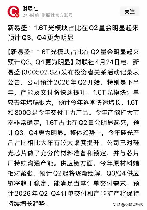 资讯 新易盛:产品结构的变动、工艺技术方案优化等对毛利率水平有促进作用