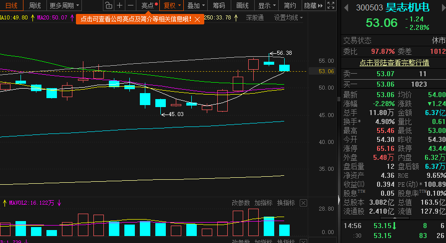 昊志机电未来两个月走势提前公开预测