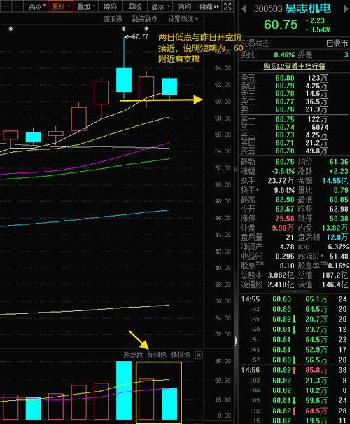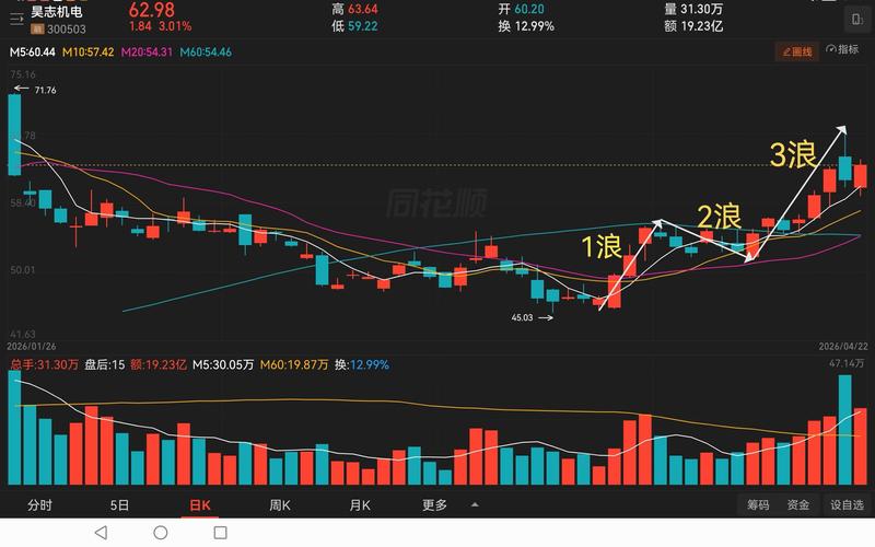 $昊志机电(SZ300503)$昨天高抛今天低吸摊低了8个点成本。昨天高抛的理由是集合竞价主力跑了2千多万,今天低吸的原因是集合竞价主力买了800多万,不怕踢飞,好股多的是。日K走5浪图形,目前处在3浪,一般来说3浪是主升浪