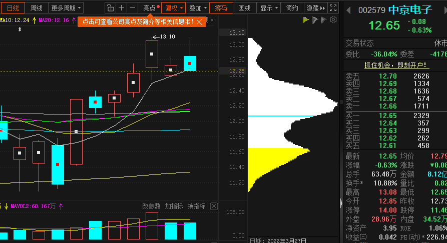 4.13早评分析:中京电子 昊志机电