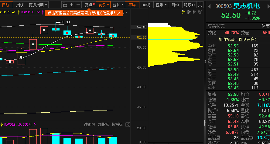 $昊志机电(SZ300503)$ 不敢卖也不敢买