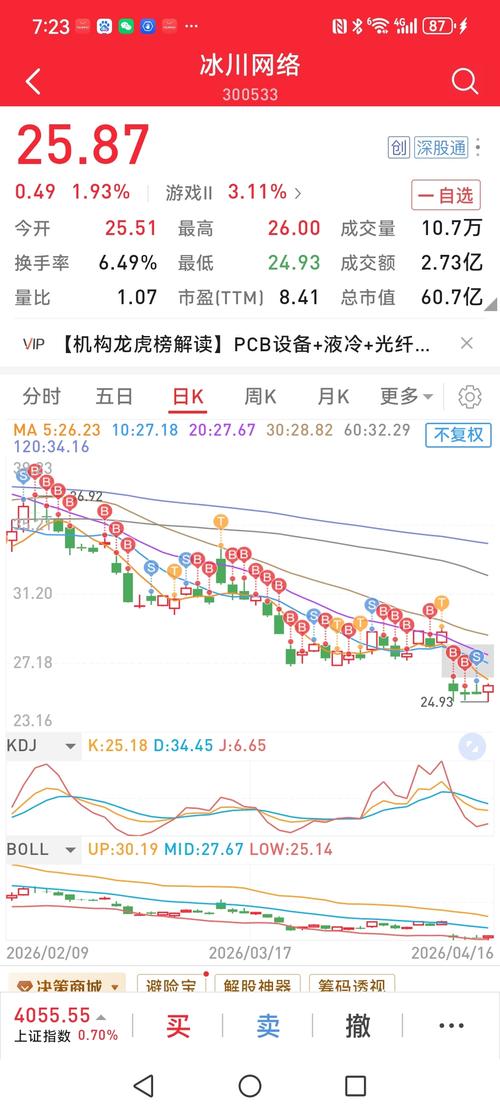$冰川网络(SZ300533)$跌破24.90短线要走了往下看到23元。今天进的2成仓亏了两个点。