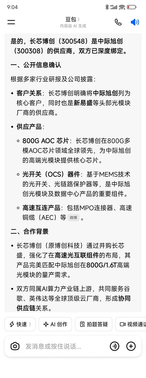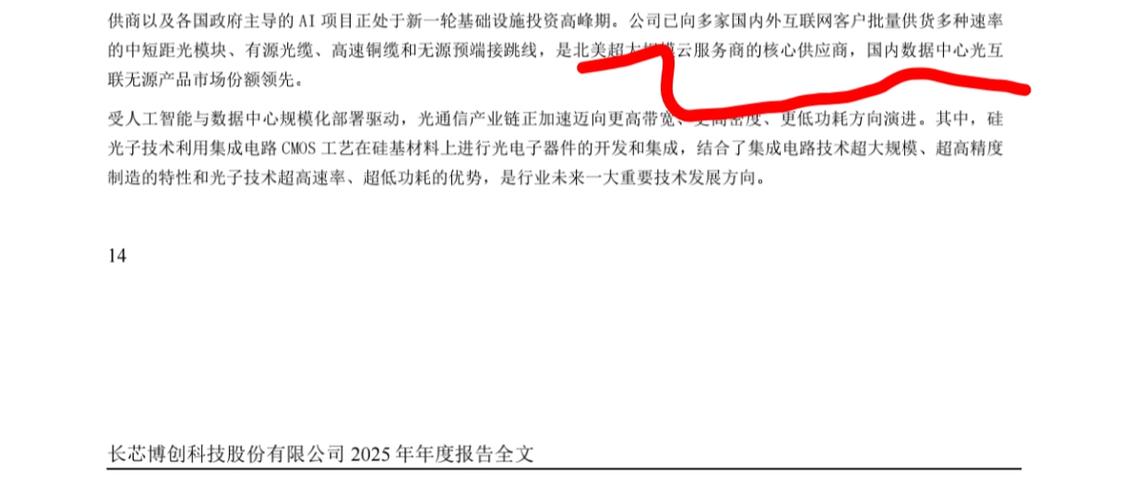 $长芯博创(SZ300548)$长芯博创→中际旭创核心供货清单(2026最新) 一、高速光模块(核心主力) -800G硅光模块(QSFP-DD/OSFP) 供货形态:完整硅光模块、硅光芯片+组件 用途:中际旭创800GDR4/FR4高端光模块,配套英伟达、谷歌AI集群。 -1.6T光模块(样品/小批量) 供货:1.6TAOC/硅光模块、高速光芯片 状态:送样验证,适配中际旭创1.6TOSFP量产线...
