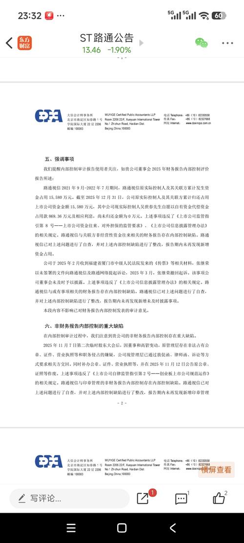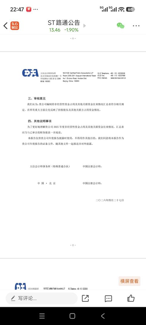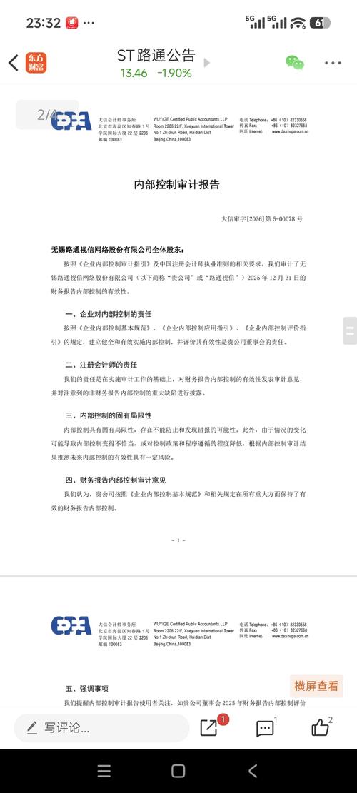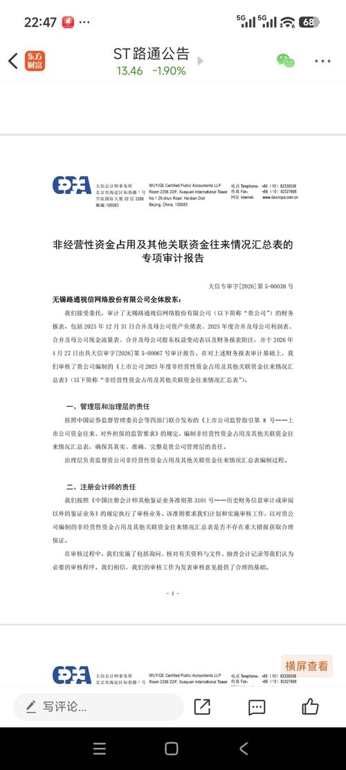 $ST路通(SZ300555)$ 内部审计报告最后的定论都是没有新增(问题) 加上已出的资金占用的专项报告,摘帽,稳了。 在资本市场实操中,这份随年报一起出炉的报告,不仅是“算数”的,而且可以说是最权威、最常用的“摘帽通行证”。 其核心逻辑在于“谁年审,谁负责”: 深交所要求申请摘帽时必须提供“会计师事务所出具的专项审核报告”。既然是年审会计师事务所(比如ST路通的中审亚太)在审计年报的同时,顺带...