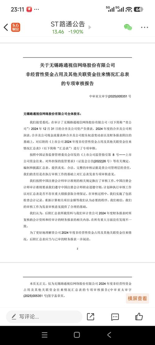$ST路通(SZ300555)$差个这就可以申请摘帽了《资金占用清偿专项审核报告》,也许已经在手里,只是还没打算摘帽