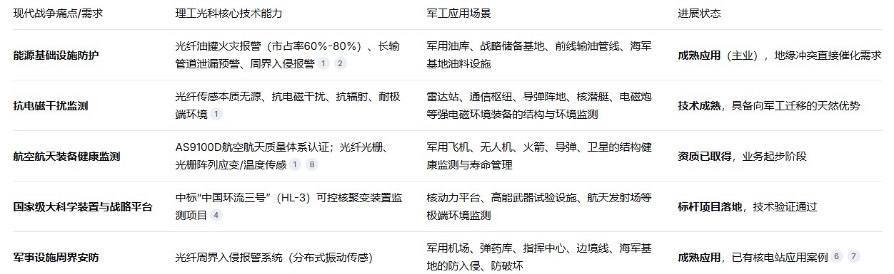 论300557的工潜力 从俄乌冲突、美以伊等现代战争的经验教训来看,理工光科(300557)的光纤传感技术与当前战争暴露出的核心痛点高度契合。尽管公司目前军工业务占比较小,但其技术路线符合“无人化、高精度、抗干扰、能源安全”等国防发展趋势,具备明确的长期战略价值。 以下结合现代战争的具体教训,对公司在国防军工领域的前景进行系统分析: 一、现代战争经验教训带来的核心需求变化 近年冲突暴露了以下关键趋...
