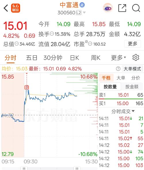 $中富通(SZ300560)$昨天为什么涨10个点?