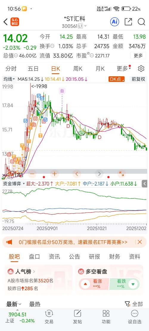 $*ST汇科(SZ300561)$有没有兄弟想做第二波的,耐心等下,在踹一脚就更好了