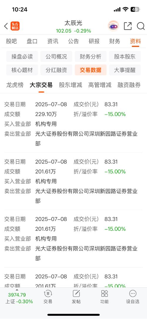 有判断力的齐辰5 更新于 今天 10:59 169次浏览 $太辰光(SZ300570)$7月份大宗交易的3000多万现在也在出货了吧 1赞