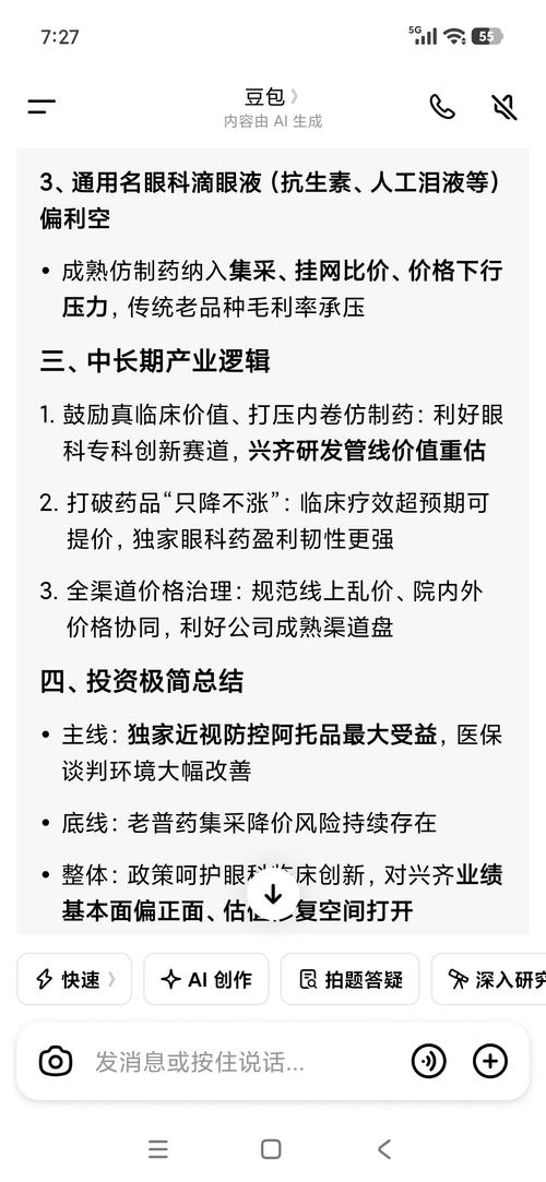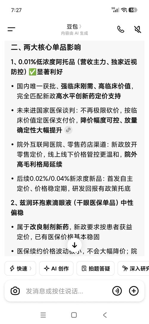 1.核心利好已透支,短期无强催化0.01%阿托品(美欧品)2024年获批、2025年放量,业绩翻倍已兑现·2026年1月获批0.02%/0.04%新浓度,股价短暂冲高后回落·市场在等:新浓度真正放量、医保谈判结果、医院扩围,目前仍在真空期2.最大利空:竞争加剧+集采预期(压制估值)·竞品逼近:恒瑞、兆科眼科等阿托品2026下半年一2027年集中上市·价格战隐忧:当前阿托品毛利率>84%,竞品上市后...