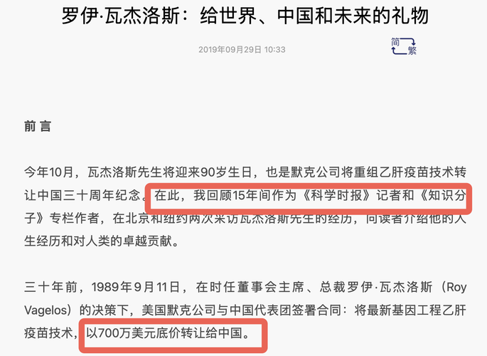 美国默沙东瓦杰洛斯37年前,700万转让给中国乙肝疫苗全套技术,超5亿新生儿受益