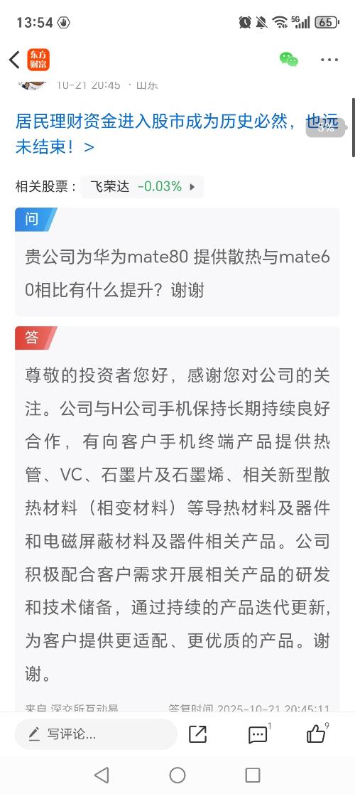华为新机飞80大卖,飞荣达手机散热起飞