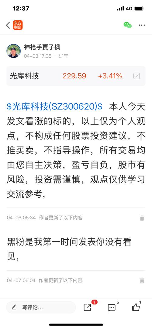 $光库科技(SZ300620)$该股我是四月三号发文看涨标的,以上仅为个人观点,不构成任何股票推荐,请大家切勿盲目跟随买卖,所有操作均需自主决策,自负盈亏,与本人无关,本人仅为免费交流股票、共同学习分享心得,所有观点仅供参考,不构成任何投资建议,股市有风险,投资需谨慎,交易盈亏自负,一切后果自行承担,