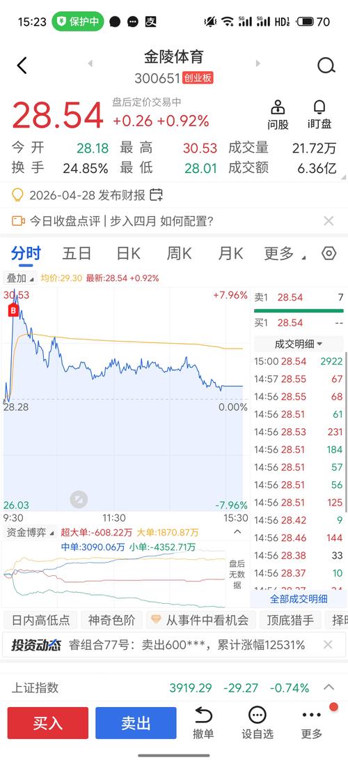 $金陵体育(SZ300651)$来个大佬说一下还能不能拿住啊,我30.32的本,有点慌,怕舒华带崩