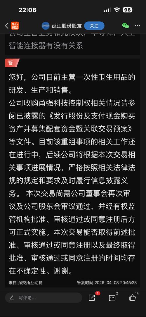 $延江股份(SZ300658)$4月8号这个一出来,第二天就一个大跌,你品这个里面的意思,目前该重组方案任在进行中,大家好好品品这篇,大资金已经读懂了意思,只有散户们看不懂,聪明资金已经出货了。