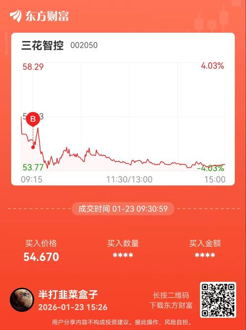 今日建仓,希望能陪伴三花成为百元股。 人型机器人板块在顶部小范围盘整,可以理解为强势整理,蓄势待发,今日创出新高。 原本在一起观察三支票,除了$三花智控(SZ002050)$,还有$江苏雷利(SZ300660)$和$卧龙电驱(SH600580)$ 但是今天三花先出了我要的买点,一直在59-54之间震荡,今天来到了区间底部,虽然有点急,但是还是先建了底仓。 防守点位就定在54,如果出现向下破掉54且...