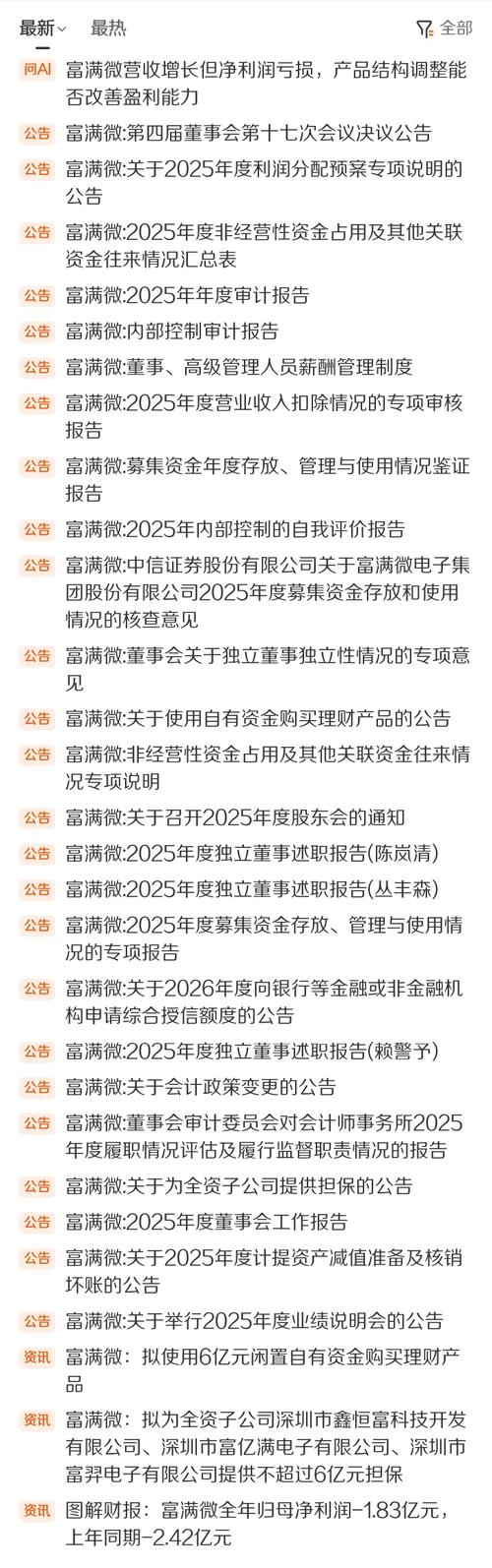 资讯 富满微:2025年净利润同比减亏5824.33万元