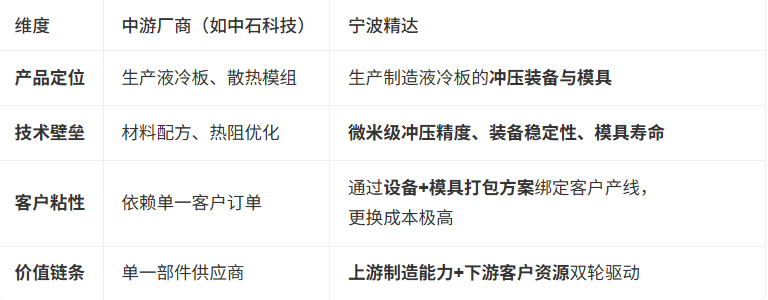 AI算力散热刚需下,宁波精达凭什么成为液冷上游“隐形冠军”?(分析) 宁波精达在数据中心液冷领域的“硬核逻辑”并非直接参与电源系统供电环节,而是以高端制造装备为核心载体,深度卡位AI服务器液冷系统的关键制造上游,构建了“设备→模具→客户供应链”三位一体的稀缺性壁垒。其硬核价值体现在以下四个维度: 1.技术卡位:微米级冲压工艺锁定液冷核心部件制造源头 宁波精达不生产液冷板本身,而是通过微通道冲压装备...