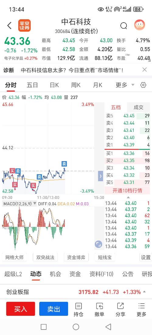 $中石科技(SZ300684)$43.33买了。明天有肉吃吗?