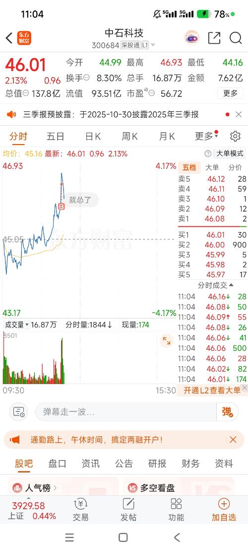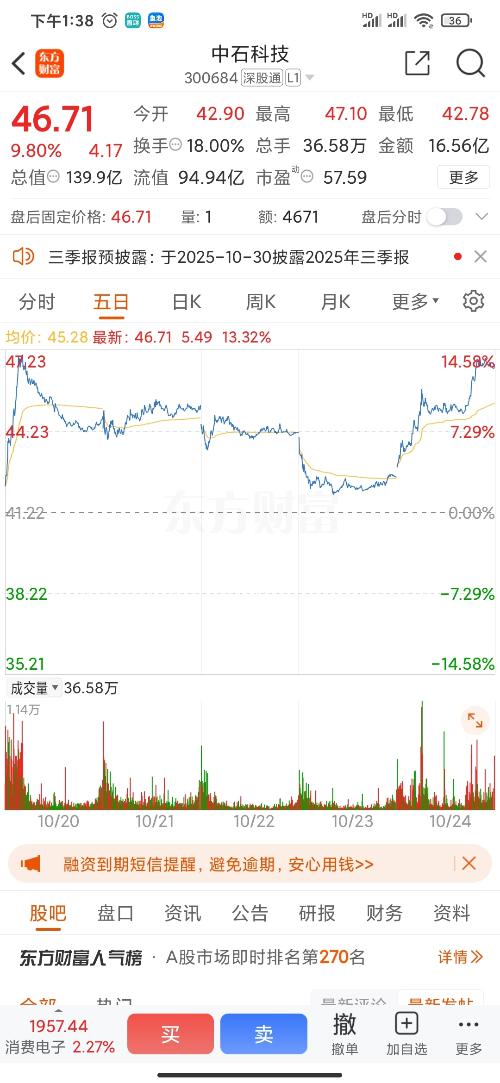 $中石科技(SZ300684)$我有个大胆想法,下周一会不会直接开在4848以上,毕竟也就不到4个点