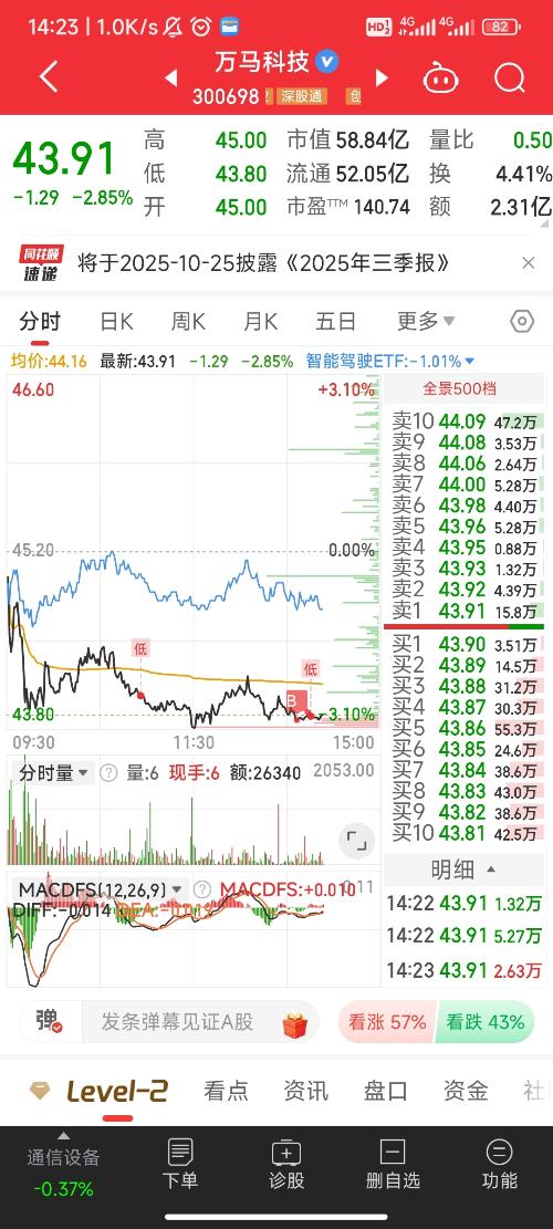 $万马科技(SZ300698)$涨停那天卖了,今天出手接回来,逻辑没变从54跌到44