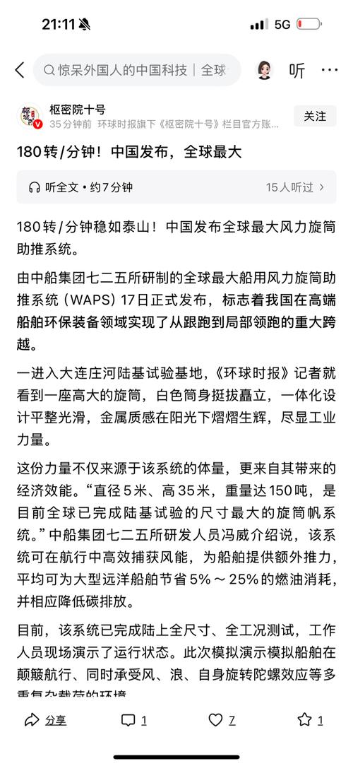 $光威复材(SZ300699)$王炸级利好来了,开启千亿级市场 市场空间打开:据预测,2030年全球旋筒帆市场规模可达千亿元级别。一旦该技术大规模商业化落地,将直接带动高性能碳纤维在船舶领域的需求爆发,为光威复材的民用版图开辟新增长极。 •技术壁垒巩固:该项目验证了国产碳纤维在超大型海洋装备上的适用性,有助于光威复材打破国外