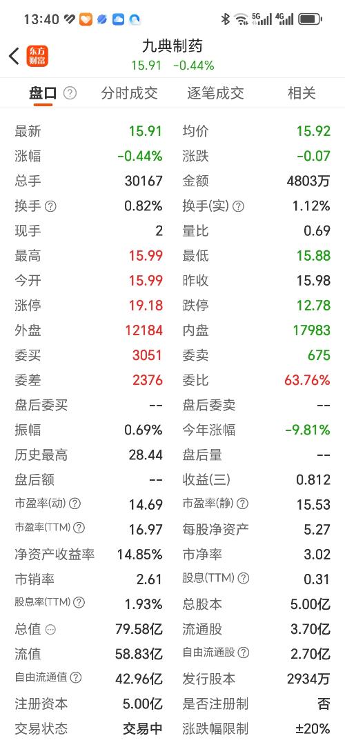 $九典制药(SZ300705)$一年到头还绿十个点,抓紧涨回来吧,让死守的股民好受点