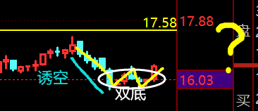 今天大盘有意思,早盘还伪装示弱,半小时之后就展开多头反击,达到目的后就稳稳地横盘震荡,这种霸气维持到尾盘!依据经验及盘面情况,下周一指数回补缺口概率大。回补之后很可能走双底形态?因此,下周一指数先扬后抑概率高!我认为上证指数回补缺口无悬念!!! 九典经过前面诱空,目前正在构造双底。今天收盘看双底雏形出来了!从最后一小时过程看,九典在下一周存在中阳线。希望变盘节点助力九典来个中阳线!让返回17.58...