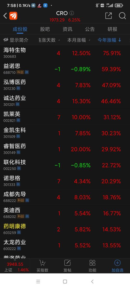 CRO板块昨日表现,沪深股市子板块的后起之秀,CRO景气度开始迅速回升。