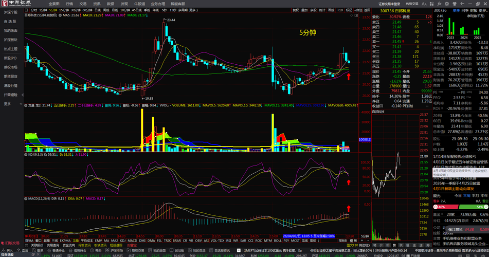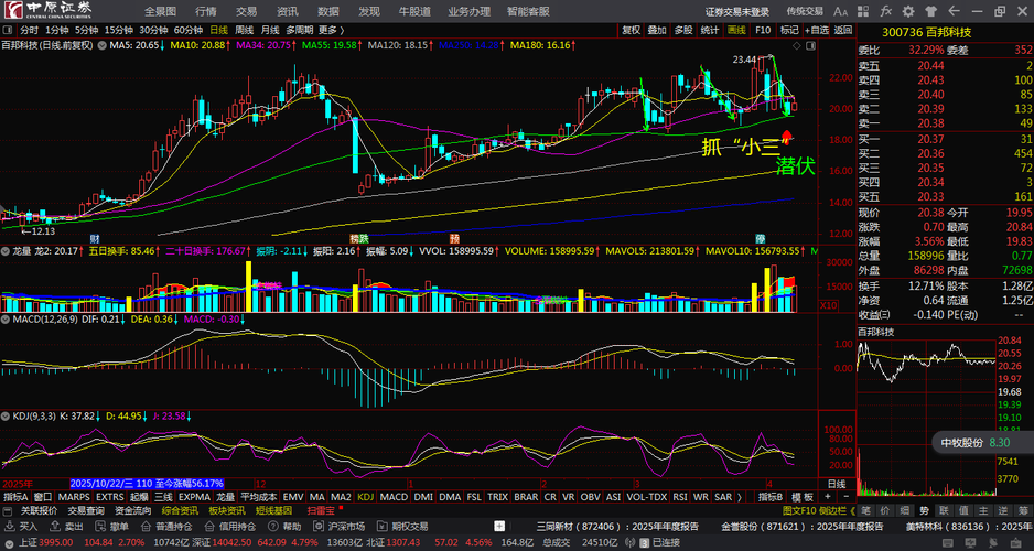 百邦科技300736均线顺上↑看多跟踪。