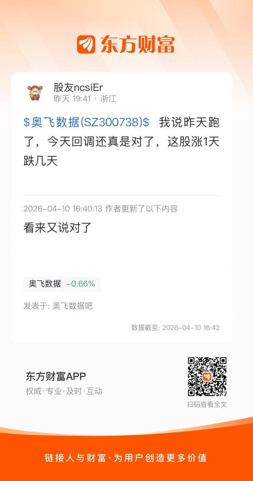 $奥飞数据(SZ300738)$我说昨天跑了,今天回调还真是对了,这股涨1天跌几天