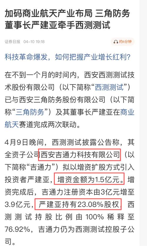 资讯 三角防务董事长严建亚拟1.5亿元入股西测测试子公司吉通力