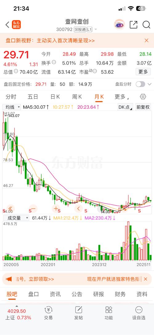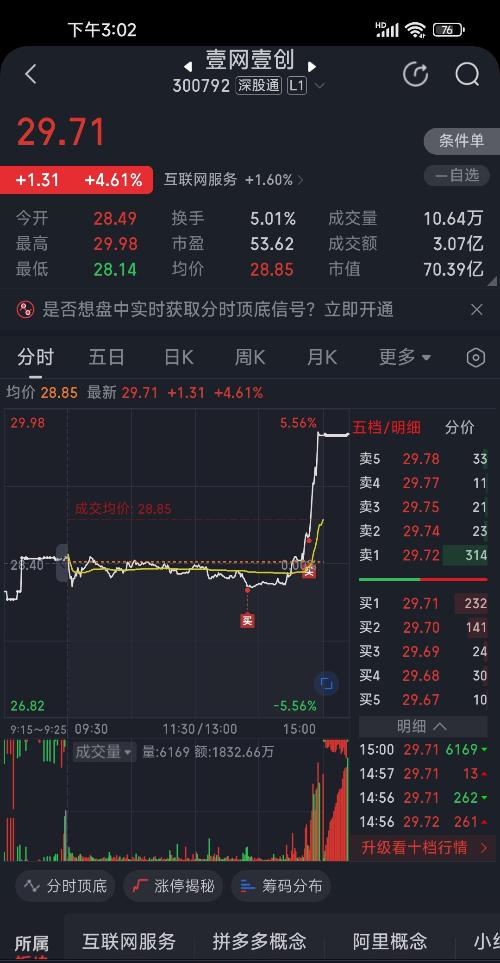 $壹网壹创(SZ300792)$下午看跌不动就买入建仓,看到拉起加仓,跟着大资金吃肉。