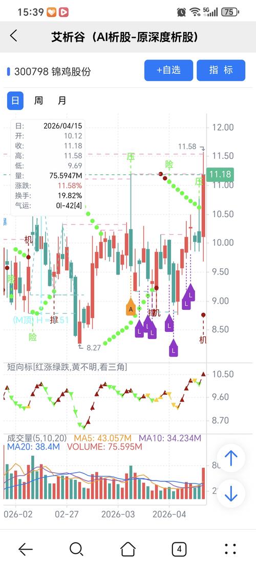 红绿小圆点是艾析谷的量化指标-艾短波,是趋势跟踪+突破类的量化指标,完全免费。 机会:股价上穿艾短波或绿变红、红字; 风险:股价下穿艾短波或红变绿、绿字。 图中A、L关注标记是对应AI选股模型当天下午2点多给出。 想多了解,问百度AI大模型,艾析谷。 AI模型选股,量化指标识别关键点,简单技术分析确定买卖点,结合量化和人工综合运用,才能有优势。锦鸡股份 重点关注红绿转换,绿表示风险