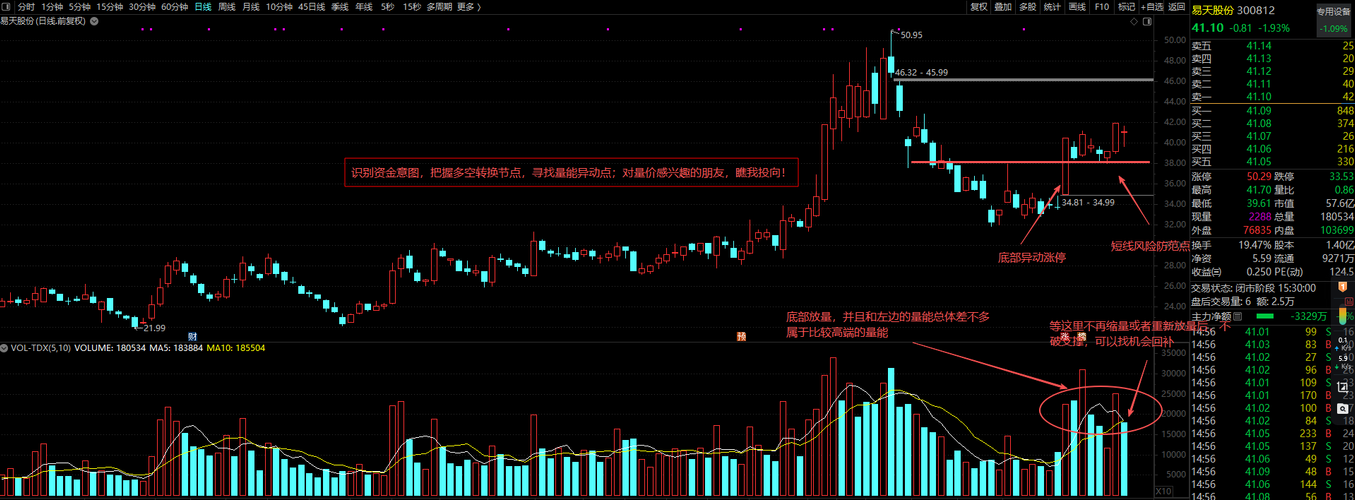 $易天股份(SZ300812)$昨天放量只涨,注定今天走势