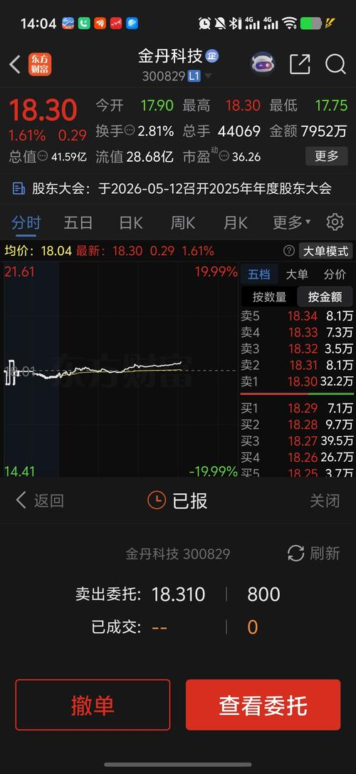 $金丹科技(SZ300829)$抓紧时间跑路,看样子明天大跌。想涨很难!!!