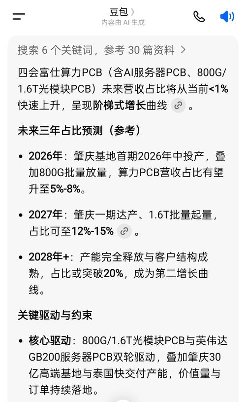 四会富仕算力PCB(含AI服务器PCB、800G/1.6T光模块PCB)去年<1%,2026年升至7%快速上升,阶梯式增长曲