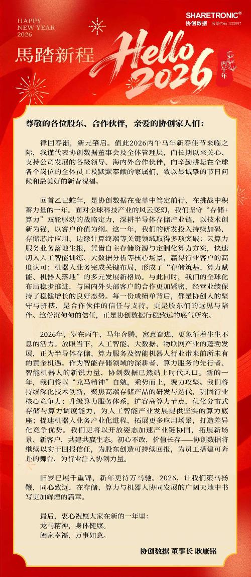 【问】现在国家大力支持发展太空算力,工信部明确,将支持相关单位开展太空算力技术前瞻性研究,逐步建立覆盖软硬件、网络、安全等环节的标准体系。天地协同,算力芯片,公司有考虑布局/部署太空算力吗?【答】协创数据:您好,公司密切关注国家算力产业政策导向,公司会结合既有技术积累与资源布局,积极参与产业发展机遇,具体布局请以公司公告为准。感谢您的关注。