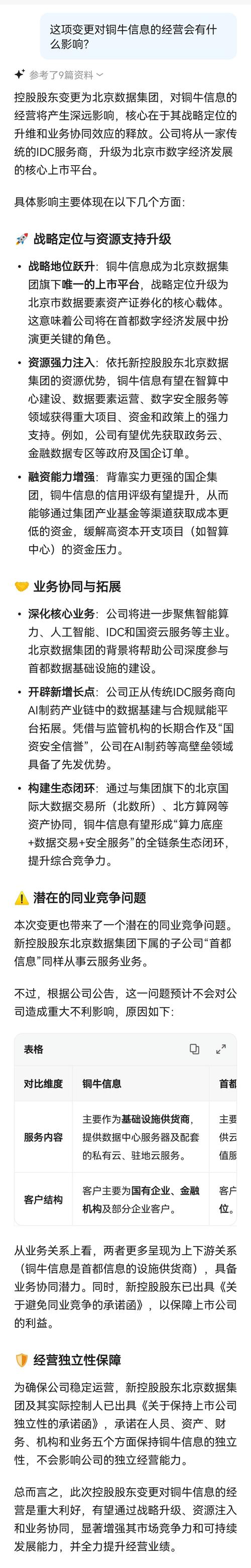 $铜牛信息(SZ300895)$控股股东变更为北京数据集团,对铜牛信息有什么影响?