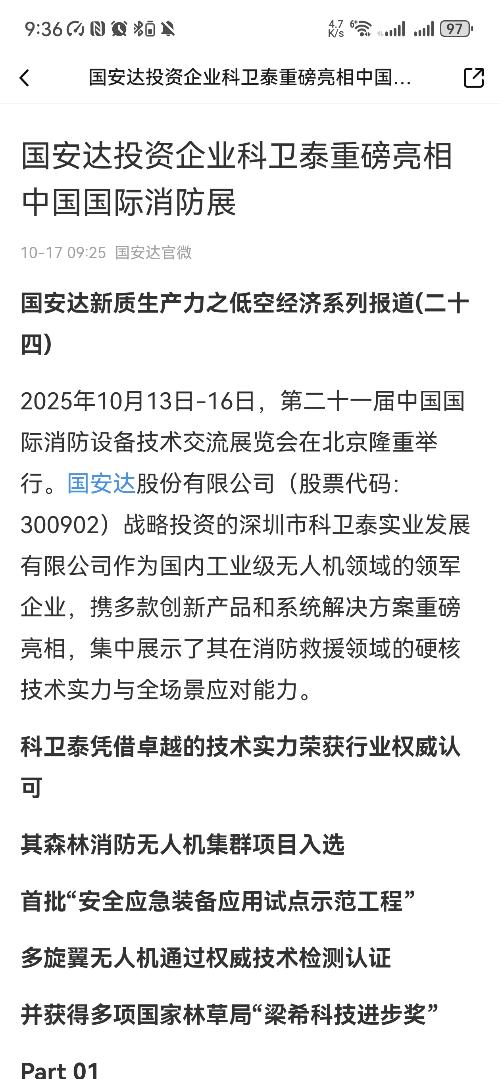 Leon里昂 发表于 10-31 21:09 79次浏览 “人民至上、生命至上” $国安达(SZ300902)$国安达股份有限公司(300902)成立于2008年,作为国家高新技术企业、中国创业板上市公司,始终肩负“人民至上、生命至上”的使命,深耕国内应急救援行业,数力于交通运输、电力电网、新能源、民生工程等重要领域,专注“火灾早期探测预警与自动灭火、消防设备物联网、智能微型消防救援站”等核心技术的研发及应用公司科研技术实力雄厚,承担16项国家级重大科研项目,取得200余项专利... 评论3