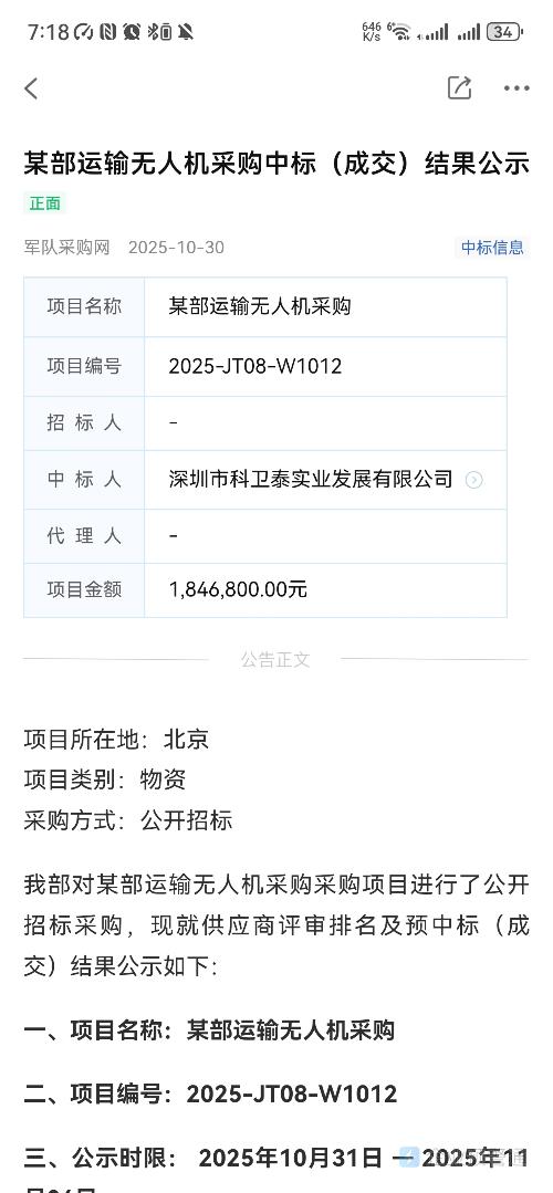 我是李琰 更新于 10-31 20:28 327次浏览 $国安达(SZ300902)$某部采购无人机用于运输,妥妥的军工股 21