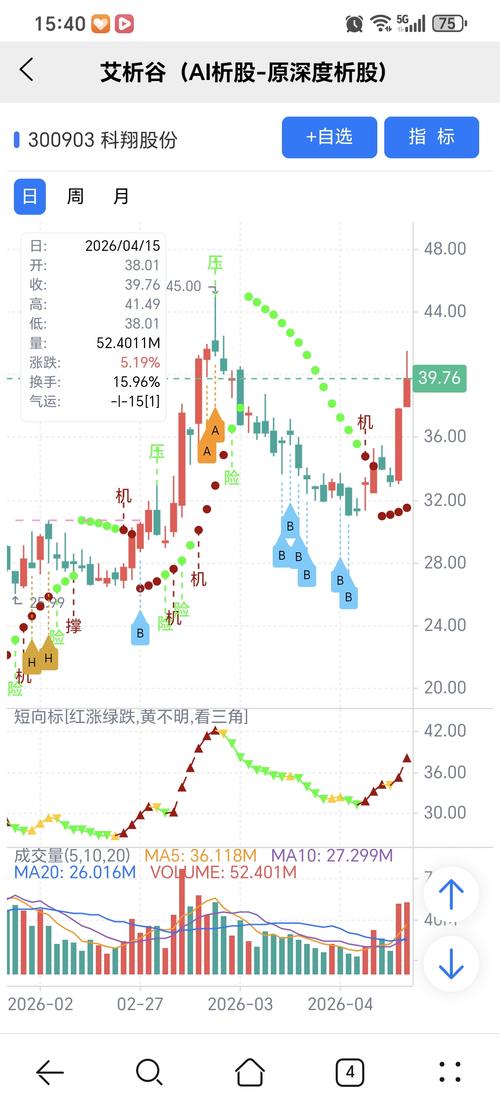 红绿小圆点是艾析谷的量化指标-艾短波,是趋势跟踪+突破类的量化指标,完全免费。 机会:股价上穿艾短波或绿变红、红字; 风险:股价下穿艾短波或红变绿、绿字。 图中A、B、H关注标记是对应AI选股模型当天下午2点多给出。 想多了解,问百度AI大模型,艾析谷。 AI模型选股,量化指标识别关键点,简单技术分析确定买卖点,结合量化和人工综合运用,才能有优势。科翔股份 重点关注红绿转换,绿表示风险